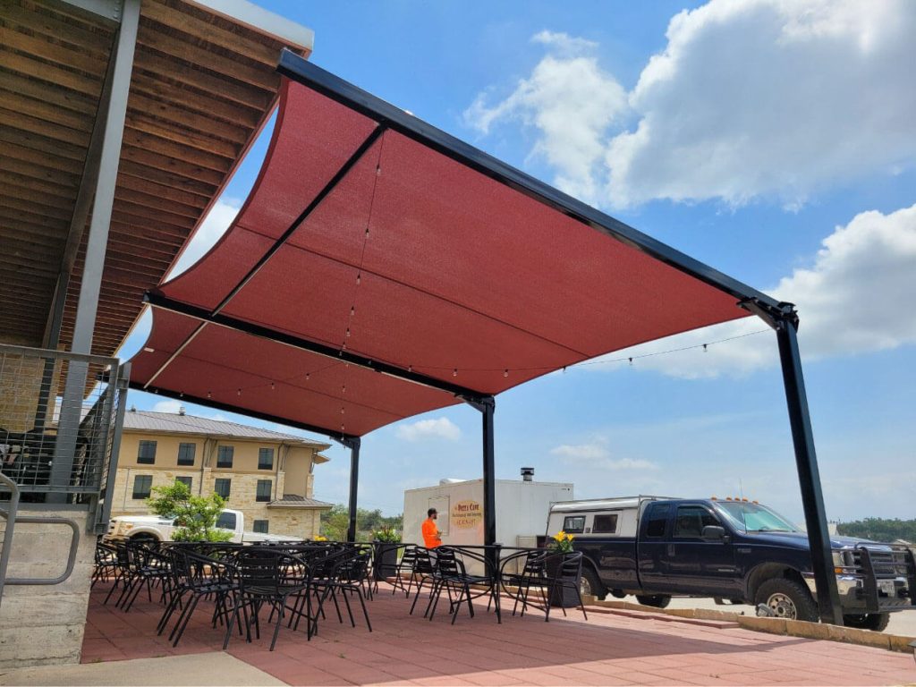• Thiết kế mái che cánh buồm cho nhà hàng độc đáo, hiện đại tạo điểm nhấn cho không gian nhà hàng.
