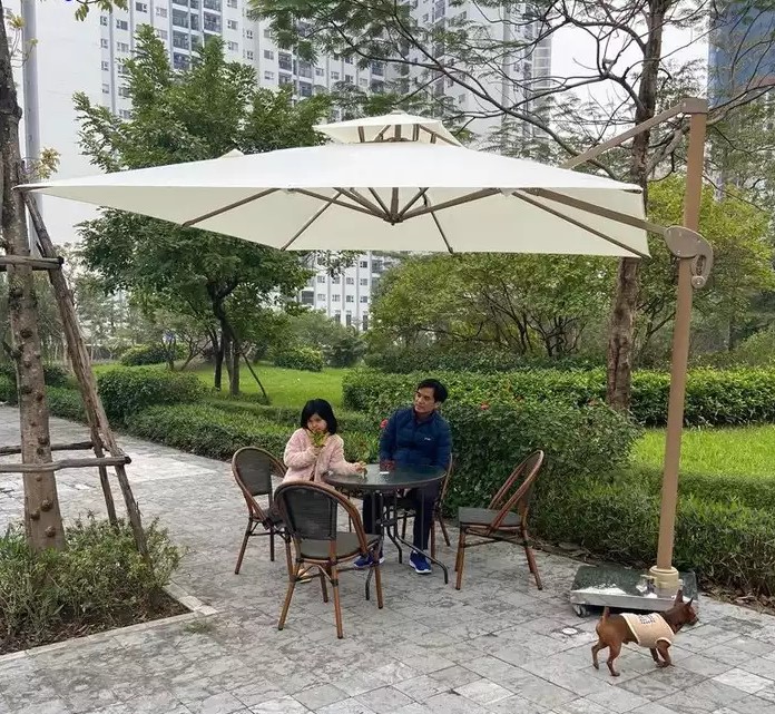 * Phù hợp nhiều không gian khác nhau cần tính thẩm mỹ cao, giúp bạn không gian sinh hoạt, kinh doanh nổi bật lên chắc chắn khi sử dụng mẫu dù che lệch tâm vuông cao cấp này