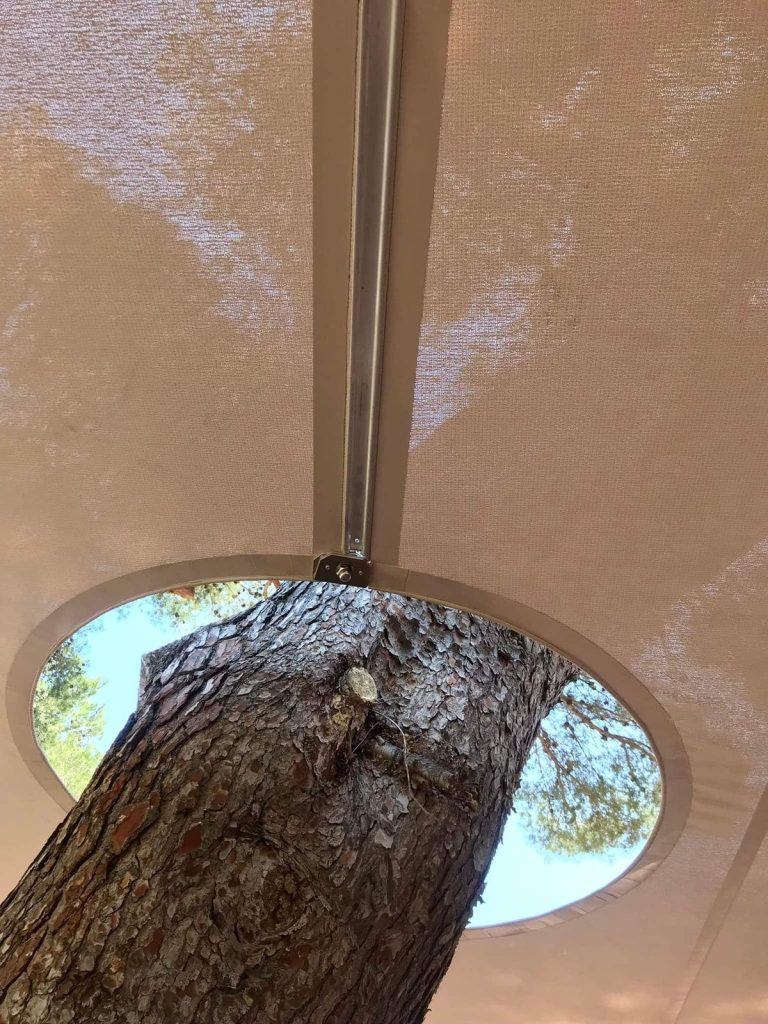 Lý do ở nước ngoài thường cột mái che cánh buồm vào gốc cây được?